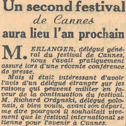 qui avait voulu, avec l’aide des studios américains, créer Cannes pour contrer la Mostra de Venise devenue ouvertement fasciste.Le 1er septembre 1939 Adolf Hitler lance ses panzers sur la Pologne, le jour prévu pour l'inauguration du premier Festival de Cannes !